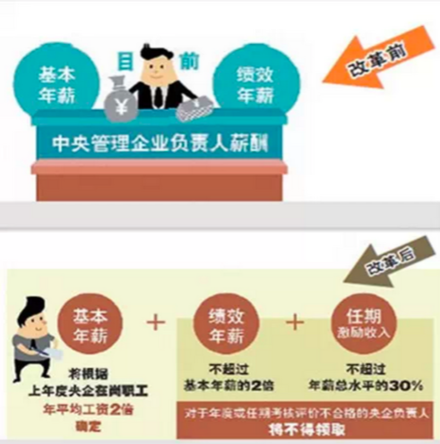 1、《中央管理企业负责人薪酬制度改革方案》(中共中央政治局2014年8月29日通过)主要强调三个方面:一是科学设置考核指标,完善薪酬综合考核评价办法。根据企业所处行业、承担职能、主营业务划分成功能类、公益类、竞争类三类企业,科学设置考核指标。二是明确薪酬构成,提高国有企业经营绩效。国企负责人薪酬由基本年薪、绩效年薪和任期激励收入三部分构成,绩效年薪和任期激励收入均与年度经营目标责任制考核得分挂钩。三是明确履职待遇及业务支出管理范围,规范支出管理。分别对用车、办公用房、培训、业务招待费、差旅费、通信费等支出范围进明确。