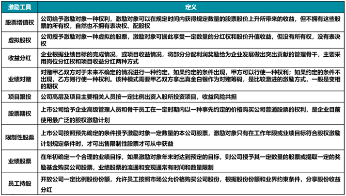 企业中常用的中长期激励工具/模式可分为以下8种: