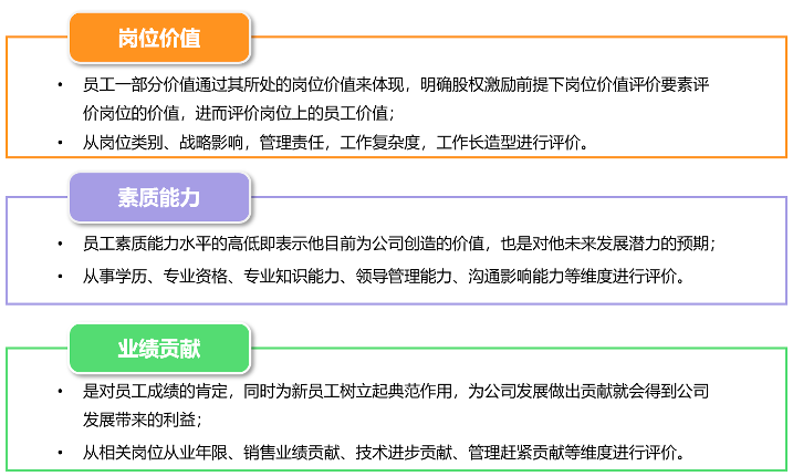 主要分为两个方面的份额确定,一是公司股权激励总份额,考虑激励总份额及预留份额的数量。二是股权激励员工的持有份额,根据岗位价值、素质能力以及业绩贡献建立人才模型,计算个人股权激励份额额度。