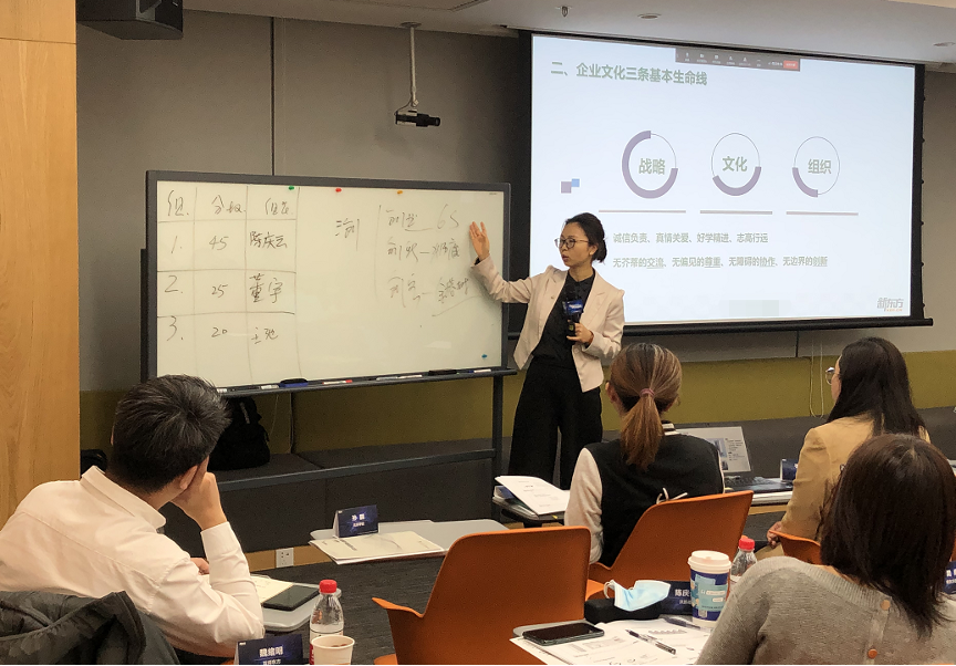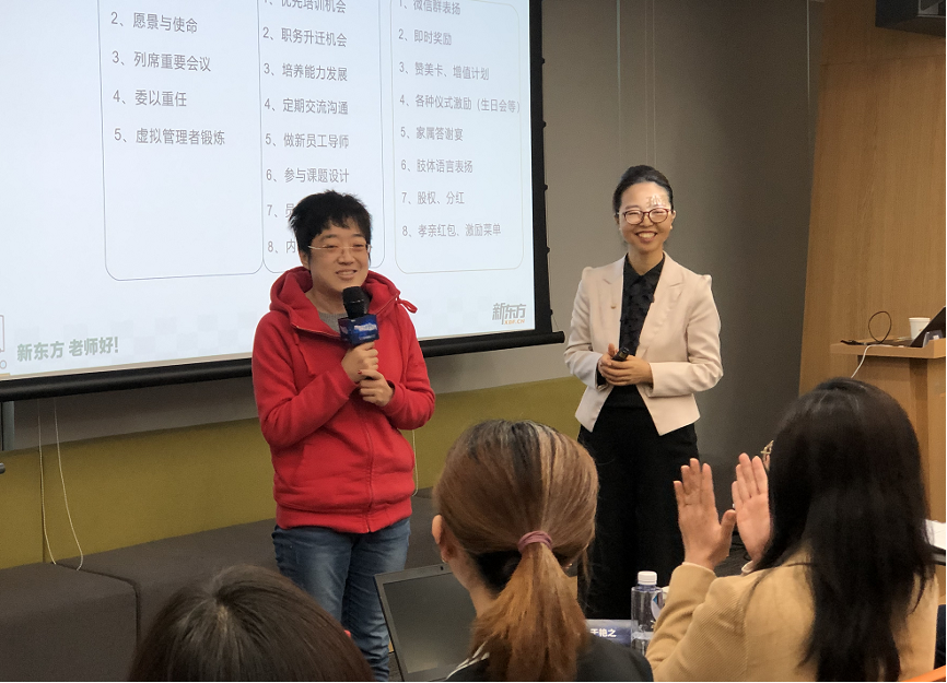 在本次课程培训中,孙老师重点分享了以下四个方面的内容:赋能管理——能力提升、人才管理——人才梯队 、文化管理——服务经营、创新管理——创新氛围。课程之间,孙老师穿插分享了多项创新管理工具,企业文化建设方法,人才培养体系建设工具,以及提高执行力、提升与下属沟通能力的方法,这也恰是新东方总办条线管理者们需要学习和提升的内容。