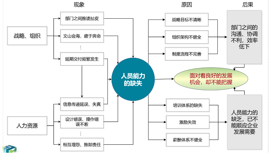 欧博官网ABG咨询项目组认为:人员能力的缺失,使得公司对发展中遇到的问题缺乏有效的分析和解决能力;随着问题不断的积累,已经严重的阻碍了公司的发展。