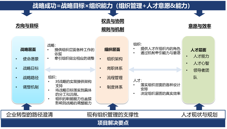 为系统的解决该公司的管理问题,欧博官网ABG咨询从战略成功的角度出发分别明确了组织层面与人才层面的项目着力点