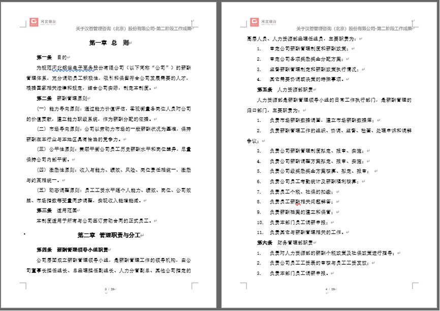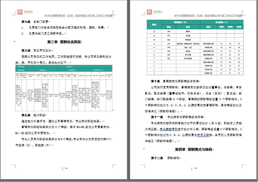 3、制定薪酬管理办法。根据公司的行业特性和发展阶段,分析公司组织机构、部门及岗位职责和人员编制的情况,对各岗位进行序列划分,构建能力薪酬体系,制定合理的薪酬管理制度,并提出长期有效的增长机制,保证薪酬水平具有一定的吸引力。