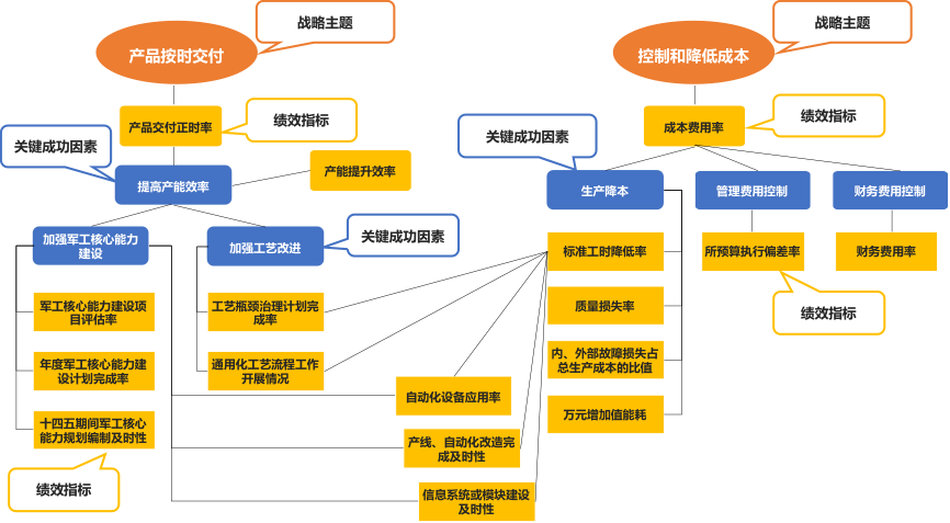 通过战略解码会将战略主题层层分解,形成能够促进战略目标实现的、可落地的关键成功因素,并对应绩效指标,确定主责部门。