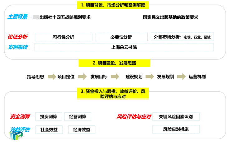 在以上背景下,出版社提出对于打造“吉云轩书苑”的可行性研究,将组建书苑项目的组建背景、可行性、必要性、市场分析、对标分析、项目运营思路、运营模式、功能布局、项目投资、项目经济效益与社会效益分析、风险识别及应对等方面进行系统研究与分析。