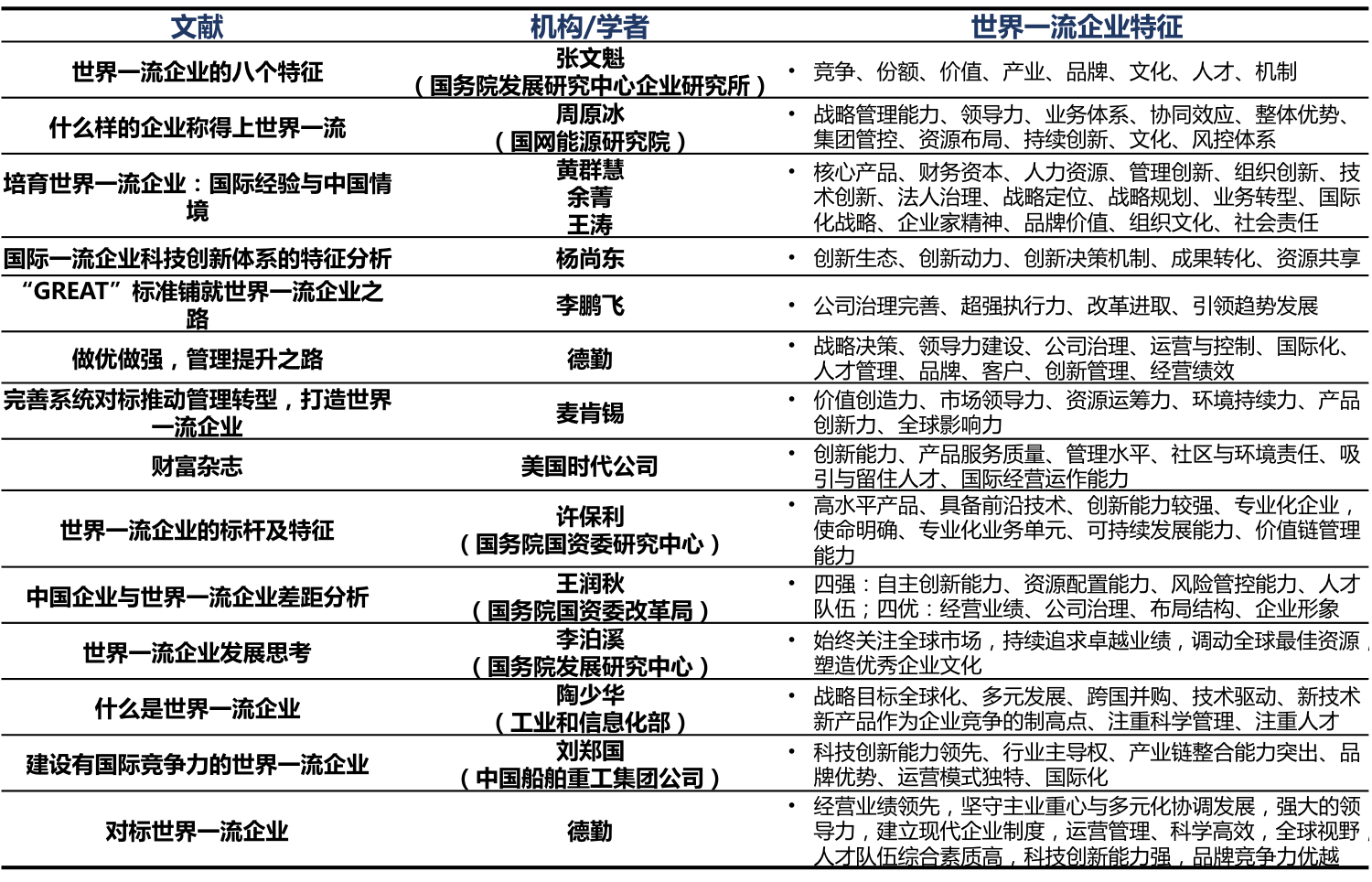 表:对标世界一流企业的特征研究