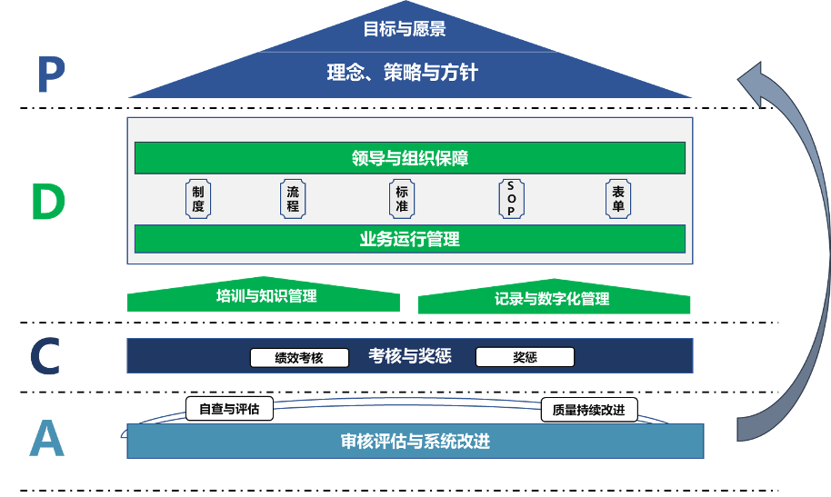 管理体系建设的最终目的是建设成具有系统的、有机的、可持续迭代特点的体系,持续满足公司预期的价值产出,实现客户、员工、公司相生共赢。