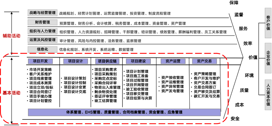 这些活动可分为基本活动和辅助活动,这些互不相同但又相互关联的活动,构成创造价值的过程,即企业价值链。以下图1是某工程型企业的价值链: