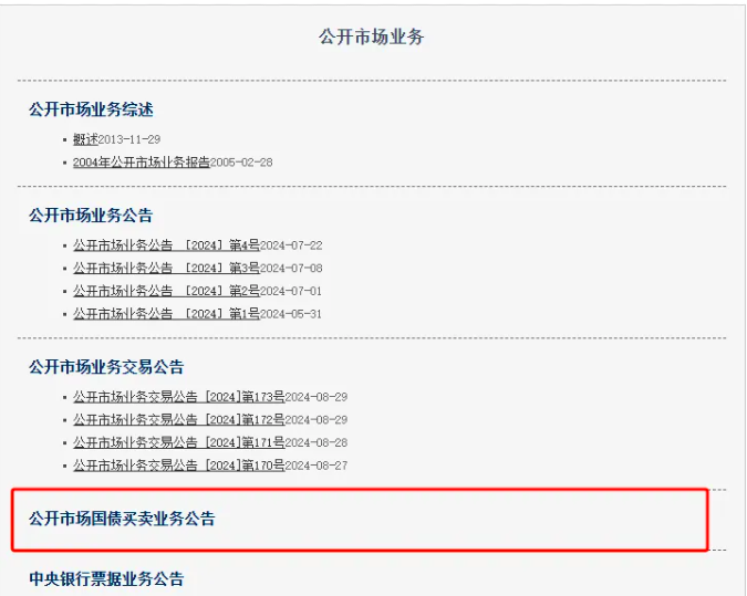 8月28日,中国人民银行官网“公开市场业务”专题页面上线“公开市场国债买卖业务公告”栏目。此次在官网栏目更新,显示央行已为公开市场国债买卖业务做好准备,再次释放其将在公开市场开展国债买卖操作的信号。