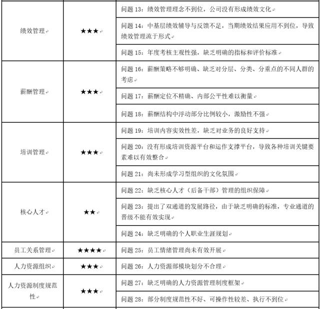 对照企业人力资源管理三阶段模型、战略人力资源系统模型,经过分析发现,问题的根源主要在以下四个方面:
