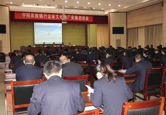 11月9日, 首席专家段磊博士应邀为宁阳农商银行企业文化推广实施启动会开展题为《企业文化建设与塑造》专题培训,宁阳农商银行的企业文化体系《水之韵,鹰之志》是由 欧博官网ABG的咨询团队设计完成,此次会议宣告为期一年的企业文化全面推广工作正式启动,会上,宁阳农商银行董事长、行业等高层领导发言,对企业文化建设工作做出 了部署和具体的指示,宁阳农商行内部培训师马老师详细讲解了企业文化手册的基本内容,段磊博士为此次启动会开展了题为《企业文化建设与塑造》的专题培训, 培训包括三个方面的内容:【用全新的视角解读企业文化】,【用全新的方法建构企业文化】,【用全新的思路应用与管理企业文化】,培训中穿插了大量的视频、 故事、案例等,通过有效的互动使得宁阳农商行的全体管理人员对于企业文化的基本概念、建设方法、推广与实施等有了更为深刻的理解,现场反映热烈,为该行企 业文化的推进工作起了个好头。