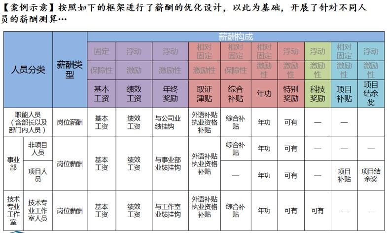 1、优化集团本部员工薪酬管理办法。分析评估集团本部组织机构设置、部门及岗位职责和人员岗位编制现状,对各岗位进行量化评估,按照岗位价值建立岗位等级,并确定相应的薪酬级别。按照“以岗位定薪、岗变薪变”的原则,制定合理的薪酬管理制度,并提出长期有效的增长机制,保证薪酬水平具有一定的吸引力。